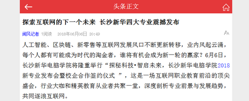 继长沙新华电脑学院2018新专业发布会暨校企合作签约仪式盛大开幕后,各大新闻媒体争相报道新专业发布会现场盛况。