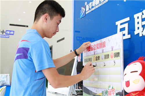 咨询中心设置了奥运道具,学子以这种方式为奥运加油